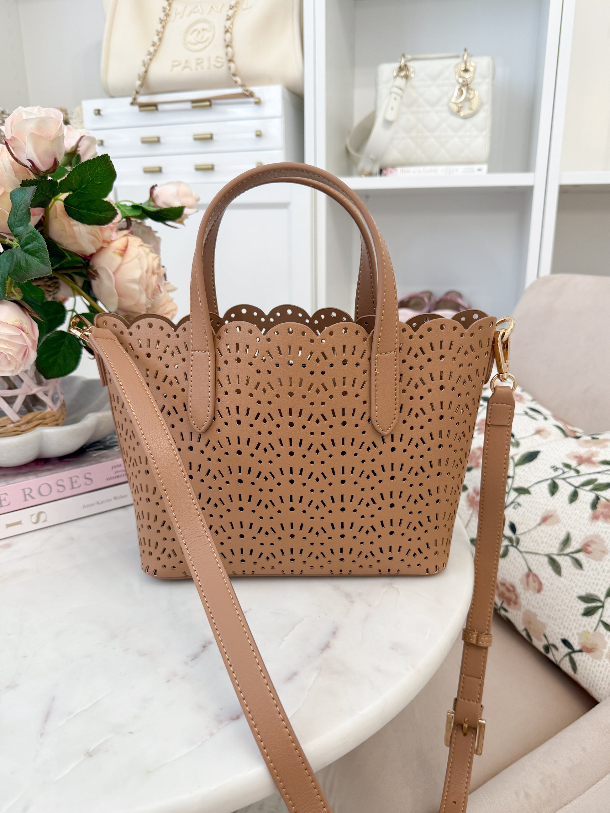 Please note, bag does not come with bow as seen on tan bag.